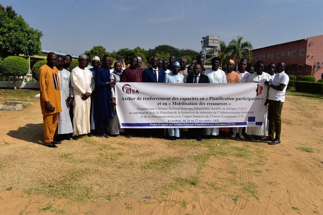 C’est la paisible localité de Koundoul, située à quelques encablures de la ville de N’Djamena, qui a accueilli la soixantaine de participants pendant les quatre jours des travaux : 26-27 novembre et 3-4 décembre 2025. Ces ateliers entrent dans le cadre du projet ACTE (Appui aux acteurs citoyens tchadiens et aux élections) qui bénéficie du soutien financier de l’Union européenne. Pour sa concrétisation, EISA a fait appel au Ministère de l’Administration territoriale et de la Décentralisation dont les formateurs ont été mis à profit pour la circonstance.
